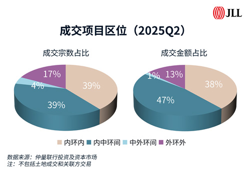 從需求結構來看,投資性需求占比達66%,雖環比小幅回落,但專業投資者的穩定參與印證了市場長期向好的基本面。從區域分布來看,中環內項目貢獻了85%的成交金額和78%的成交宗數,核心區域資產集聚效應顯著。