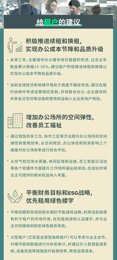 我們認(rèn)為可持續(xù)發(fā)展仍是企業(yè)房地產(chǎn)的中長期趨勢。但值得注意的是,在已設(shè)定零碳目標(biāo)的租戶中,今年有1/5的企業(yè)表示考慮推遲或正在重新審視原定目標(biāo),這或與近期歐美地區(qū)清潔能源、新能源汽車等領(lǐng)域的相關(guān)政策變化,以及企業(yè)經(jīng)營預(yù)期和戰(zhàn)略目標(biāo)的調(diào)整有關(guān)。