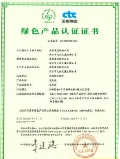 會上,美巢集團股份公司代表周斌博士上臺接受了中國綠色產品認證證書授牌。美巢集團“防水涂料”“室內一般型膩子”“室內耐水膩子”產品獲得“中國綠色產品認證證書”,該證書是認證機構代表國家頒發給企業的榮譽證書。