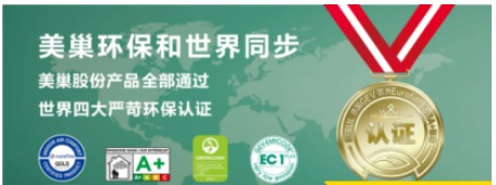 除了拿到國內的環保認證,美巢集團股份公司產品還全部通過了世界四大嚴苛環保認證:美國UL GREENGUARD綠色衛士[金級]認證、德國GEV EMICODE EC1PLUS認證、歐洲歐陸IAC金級認證、法國French A+級標準。憑借著對環保的高標準要求,美巢集團成為2020年迪拜世博會中國館指定用品供應商。