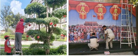 世茂服務(wù)各項目工作人員精心策劃準(zhǔn)備,全身心投入,在小區(qū)出入口、主干道等處懸掛鮮艷的國旗、條幅、燈籠,張貼“歡度佳節(jié)”字樣,扮靚小區(qū)的同時,也讓業(yè)主家人們感受到了濃濃的節(jié)日氣氛。