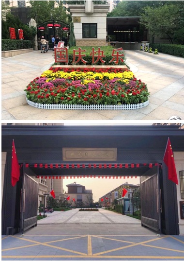 從社區(qū)出入口到回家大堂,再到入戶樓門,隨處可見特意裝點的鮮花及祝福話語,物業(yè)人員用實際行動表達對祖國生日的慶祝及對業(yè)主的節(jié)日祝福。