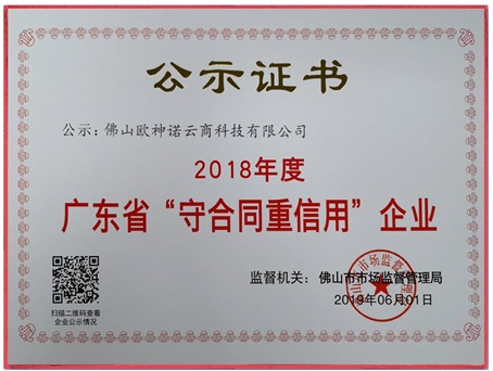 ▲連續16年榮獲廣東省守合同重信用企業稱號