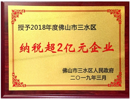 ▲歐神諾獲2018年度佛山市三水區納稅超2億元企業