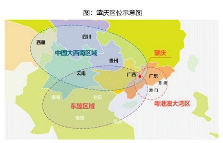從區位上看,肇慶則是灣區城市中唯一與大西南接壤的城市,灣區規劃中,肇慶的定位是在灣區城市中起到承東啟西的作用,成為灣區連接大西南的樞紐門戶城市。
