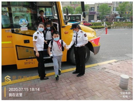 住在世茂社區的業主,每天都會看到這樣的風景:無論上學還是放學,主出入口處處總是會有物業的秩序員們圍成一道“防護墻”,將孩子們安全送上校車或交到家長手中。