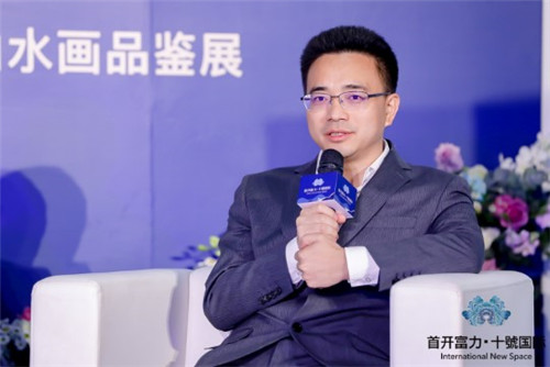 山水之樂品鑒展作者、中國畫創作研究院執行院長、中國藝術研究院碩士生導師--袁學君先生壓軸致辭:自古以來,中國人對天地有很深的認知,這里面就包含了對空間、時間的要求。作為中國山水畫實踐者,需要對空間有一定的把握。中國園林講究"既得市集之便,亦有林泉之境",十號國際以北宋名畫《溪山行旅圖》作為藍本打造園林,汲取山水精髓,又有奢盛體驗。于此展覽畫作,源于空間尺度,又有山水傳承之意。