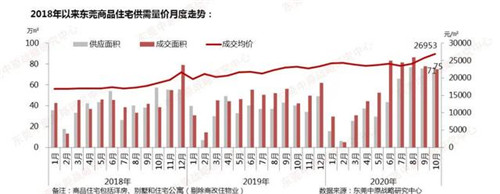 東莞中原戰略研究中心指出,由于“銀十”傳統旺季,開發商積極推貨,客戶入市信心增強,推動成交維持年內高位水平。價格方面,監測數據指出,由于市場整體供不應求矛盾突出,推動房價持續上漲。10月份,東莞住宅成交均價26953元/平方米,環比上漲5%,同比上漲16%。