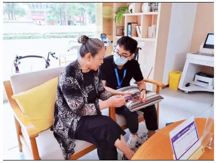 奧園健康服務(wù)人員向長(zhǎng)輩提供服務(wù)