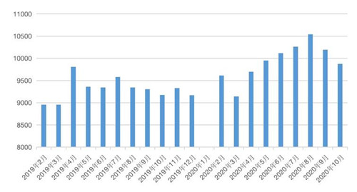 根據全國商品房銷售面積、銷售金額測算,10月商品房銷售均價為9875元/平方米,同比上升5.8%,環比下降約2%。這是繼6月以來全國商品住宅單月成交均價首次跌破萬元以下。