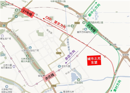 提到交通,城市之光東望位于北京東部,依托本身區域小街區密路網的規劃優勢,擁有三軌三高的交通選擇,天然形成扇面交通的多維度空間,保證了出行的多重選擇。