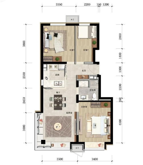 三期還有新增的70平的"三面寬"小戶型。這個戶型不但三面寬,還是全通透的格局,客廳和餐廳形成通透,次臥和廚房通透,主臥和衛生間通透。采光和通透性都達到了極致…而且還是全明格局,干濕分離,3個大飄窗,各種優點全部集齊,可以算是最牛的70平了……