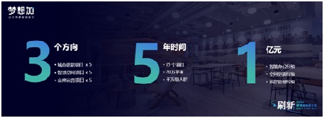 近日,夢想加空間正式對外宣布升級品牌形象,并發布一份“辦公伙伴計劃”。按計劃所述,夢想加將在未來五年中持續投入1億元資金,把積累的智能辦公、空間更新、運營管理等能力及經驗在合作伙伴中開放共享,為城市更新、智能管理、運營服務3個方向共計15個項目提供支持。