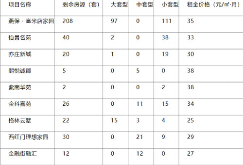 根據(jù)公告,這9個(gè)公租房項(xiàng)目分別是:燕保?高米店家園、怡景名苑、亦莊新城、熙悅誠郡、紫南華苑、金科嘉苑、格林云墅、西紅門理想家園、金融街融匯,月租金范圍從25元/平方米到38元/平方米。