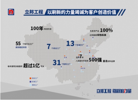 在與合作伙伴長期的戰略合作中,立邦始終堅持以客戶需求為中心,致力于為客戶提供全方位整體解決方案,不斷創新,整合服務資源,高標準、高效率地助力客戶達成高質量的項目效果。截至目前,立邦已在全國多個城市開設了55家工廠,并加快了綠色智能工廠的建設,在提升生產品質的同時,保障穩定供貨,提升生產效率,實現客戶的快速交付。