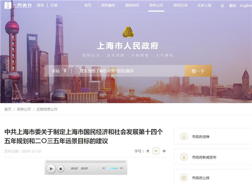 中共上海市委關于制定上海市國民經濟和社會發展第十四個五年規劃和二〇三五年遠景目標的建議