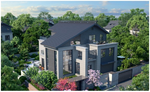 雖然獨棟別墅“皇帝的女兒不愁嫁”,但優山美地A區并未停止對市場及客群的探究,而是在迭代更新中善于捕捉和把握趨勢,洋溢著傳統與現代融合的時代氣息。以建筑設計為例,優山美地A區新中式風格結合當前審美情趣進一步升級,外立面以奧古米黃干掛石材搭配清水磚質感的陶磚幕墻呈現,深淺對比,整體色彩既有中式大宅的純粹素雅又不乏溫馨。同時搭配深棕色的鋁板裝飾,可謂顏值滿分,不僅更符合現代人的審美,也更堅固耐用。尤其值得一提的是,優山美地A區的野心并未止步于單純的產品層面,而是通過打造藝術與生活融為一體的A7美術館,力圖探究新一代別墅居住者的價值觀和生活方式。