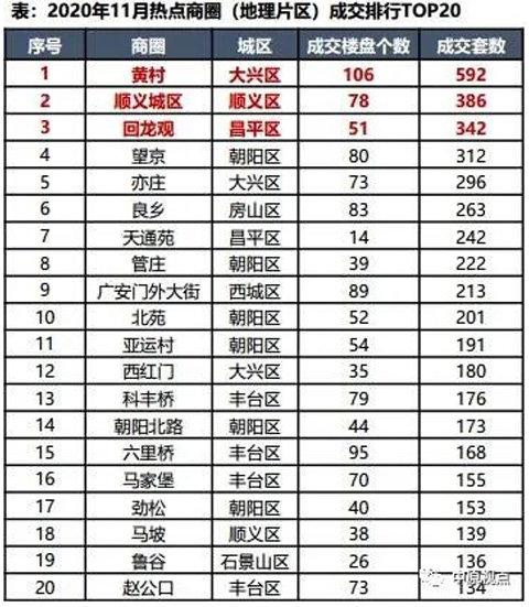 大興黃村、順義城區(qū)、昌平回龍觀商圈成交量排名位居前三;