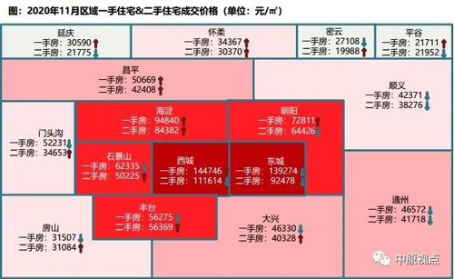 從區(qū)域一二手住宅成交均價(jià)來看,海淀、昌平、懷柔3個(gè)區(qū)域一二手住宅成交均價(jià)均上漲,東城、通州、順義2個(gè)區(qū)域一二手住宅成交均價(jià)環(huán)比均下跌。