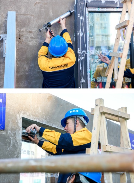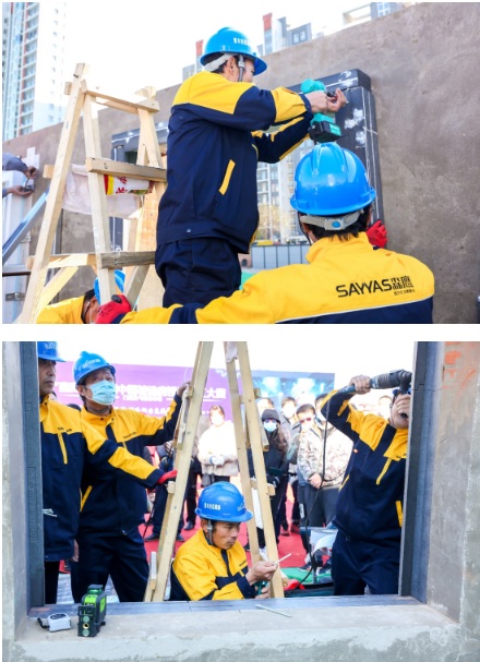 選手們摩拳擦掌,精神抖擻,在有限的時間內用最高專注度完成作品。六個參賽團隊各自緊張而有序的推進著自己的施工方案,既展示施工團隊規范的施工作業,也提高團隊的協調能力。他們飽含工匠人的赤誠,揮灑汗水,團結協作。通過實操比賽為企業提供一個交流的平臺,參賽團隊間相互切磋交流總結施工中的不足,學習優秀的施工工藝。既創造了表現自我、鍛煉自我的機會,也提高了企業自身的施工實際操作能力。而現場的觀摩者,也在交流觀察中學習了更多的實操經驗。以賽促學,規范行業設計,推動行業健康發展;以學促知,讓社會各界人士更多的了解被動房,了解被動式門窗設計安裝工藝,了解建筑節能,通過大賽加速推動被動房相關行業的發展。