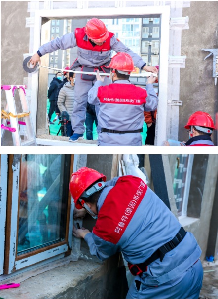阿魯特代表隊安裝的德國Aluplast Ideal8000被動窗,整窗K值0.92,滿足寒冷地區使用,使用外掛式安裝工藝,開創性的使用了附框系統,可以三維調節,適應不同建筑高度的需要,解決了窗戶交叉施工的成品保護問題,有效解決了客戶換窗的需求。根據集成化,裝配式建筑的思路,增加了窗套及窗臺板設置,顏色一致,解決用戶的后顧之憂。
