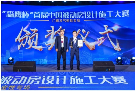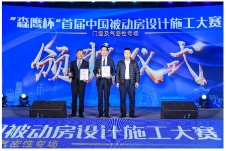 經過激烈的比拼,榮譽名單出爐,哈爾濱森鷹窗業股份有限公司榮獲2020中國首屆被動房設計施工大賽一等獎,北京建筑節能研究發展中心主任龔海光為獲獎企業頒發榮譽。