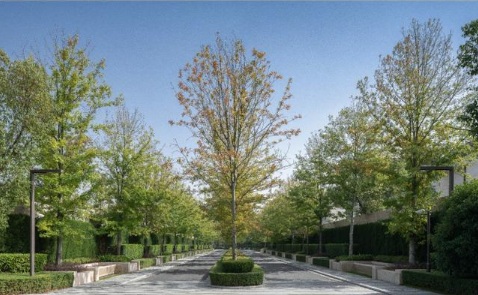 在鎏光鑲金的虹橋之芯,建面約16000方城市森林,將89棟莊園別墅嵌入一個無界的自然詩境。遠跨萬里而來的62棵娜塔莉樹陣,錦繡一片;凝萃百年風華的雞爪槭,正由碧玉色轉為寶石紅,璨然奪目;從東北深山遷居于此的銀杏,身披金色陽光,璀璨迷人······
