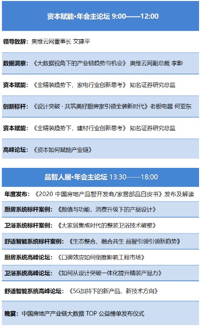 奧維云網將于活動現場重磅發布《2020 中國房地產品智開發商/家居部品白皮書》。