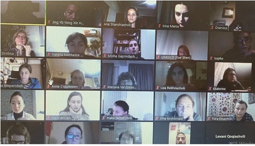鑒于特殊時期,此次專題會議以線上形式舉行,聯合國教科文組織活態遺產處、聯合國教科文組織格魯吉亞國家委員會、格魯吉亞國家文化遺產保護中心、格魯吉亞手工藝遺產聯盟的領導專家參加此次會議,永新華韻派海外公司代表參加會議。