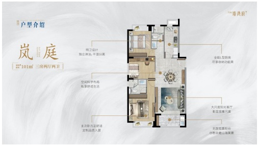 106㎡(建面約)戶型擁有小區新中式園林景觀面,同時又能部分看海的戶型,南向三面采光,秒殺市面140㎡的戶型!