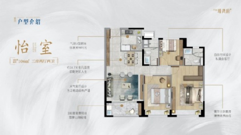 106㎡(建面約)三房,整體室內凈寬4.2米豎廳設計搭配上3.8米落地陽臺門,將景觀引進戶內面積約23㎡左右;基本上相當于是市面上140平的戶型。平時邀請朋友來聚會10個人,都不會擁擠。