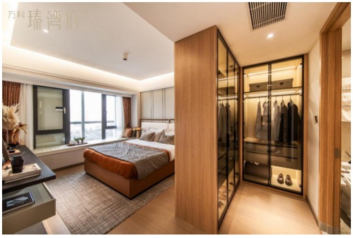 主臥設計上,萬科瑧灣府嚴格地執行了通透明亮的設計標準,將臥室的空間設計展現到極致,合理分區。主臥面積超24㎡,配備獨立衛浴和衣帽間,完美詮釋海居私密生活。