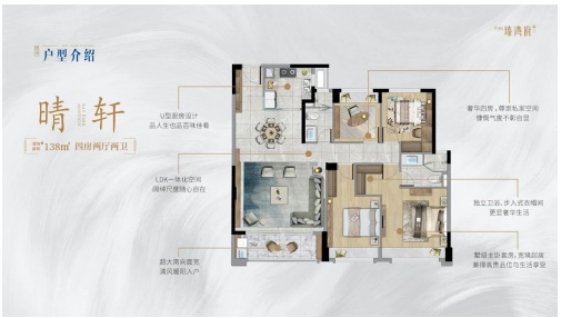 138㎡奢享四房兩廳,延續高標準生活尺度