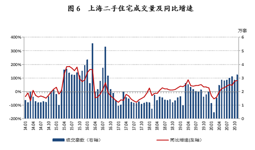 上海二手房市場11月成交量創4年來新高,表現強勢。11月,上海二手住宅成交套數約為3.2萬套,環比增長13.5%,同比增長81.4%。11月上海二手房的成交量較上月有所增長,同比增幅較為明顯,成交量創4年來新高。