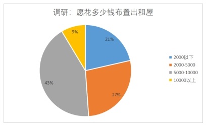 問卷調(diào)研中,78.29%的租客認(rèn)為租房不會影響生活品質(zhì),40%的租客甚至愿意花費(fèi)超過5000元裝飾自己的房屋,裝飾類型包括軟裝改造、生活家電等。據(jù)BOSS直聘數(shù)據(jù)顯示,2019年北京白領(lǐng)平均月薪為12312元,薪資水平為全國最高。愿為租房花費(fèi)超過5000元的租客至少得花費(fèi)半月工資來布置房屋。
