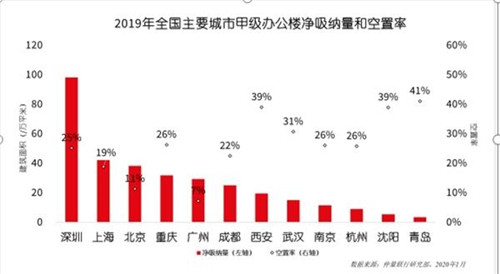 不過,與2018年相比,成都第三方辦公新增需求減少約4.6萬平方米,其新增需求顯著下降是導致全市甲級辦公樓凈吸納量同比下滑的最主要原因。甲級辦公樓平均空置率同比下降1.0個百分點,至年末報22.4%,達到2012年以來最低水平。