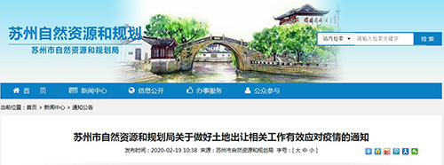 蘇州市自然資源和規劃局關于做好土地出讓相關工作有效應對疫情的通知