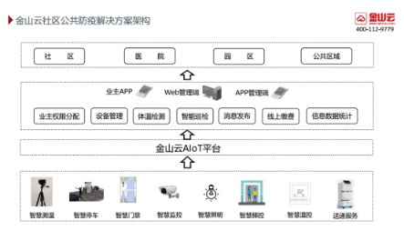為此,作為全球領先的云計算服務提供商,金山云針對當前社區防疫工作痛點及在智慧社區建設方面的技術和成熟經驗,火速推出了金山云AIoT無接觸式智慧社區解決方案。涵蓋智慧停車、智慧門禁、智慧測溫、智慧送遞、智慧梯控、智慧照明、智慧溫控、智慧監控、健康上報等服務在內的無接觸式解決方案,提升社區治理,促進公共和便民服務智能化,保障社區安全。