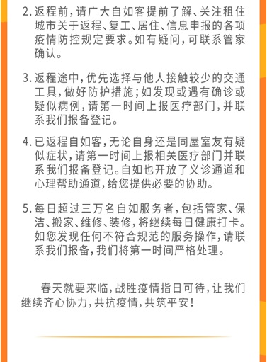 如何繼續保障租客安全順利返程和租住安全?新公告中,自如也對150萬在住自如客發出了進一步的安全提示。