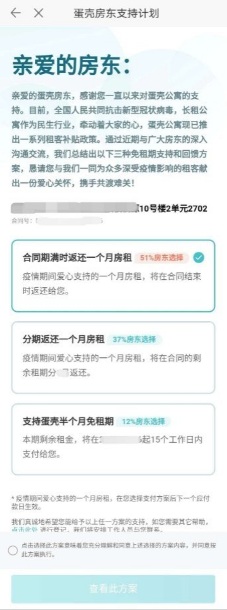 2月20日,蛋殼公寓面向廣大房東公布了“蛋殼房東支持計劃”,從最終的方案看,無論是合同結束后返還,還是分月份分期返還,在對房東沒有造成實質性損失的情況下,一定程度也緩解了疫情對企業的沖擊 ;而另一邊,蛋殼公寓利用平臺優勢,用大力度的補貼反哺租客,實現了房東、租客、平臺三方共贏的局面。