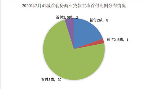 2020年2月41城首套房商業貸款主流首付比例分布情況