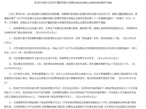 3月12日9時57分,陜西省寶雞市人民政府辦公室印發《寶雞市住建行業堅決打贏新冠肺炎疫情防控阻擊戰穩企業穩民生穩發展若干措施》,措施共計15條,其中第12條明確,各銀行要積極爭取降低首套住房貸款首付比例政策,公積金貸款最高額度由40萬提高至50萬。