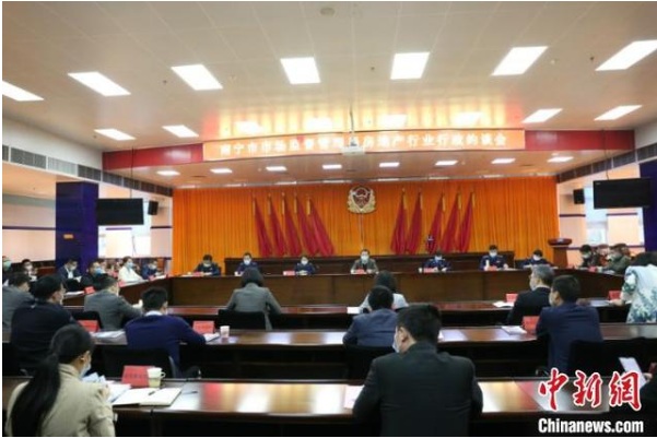 當天,為推動消費領域社會共治建設,規范南寧市房地產行業經營行為,提升南寧市消費滿意度,改善營商環境,維護消費者合法 權益,南寧市市場監督管理局召開了房地產行業行政約談會,集中約談了南寧市30家房地產企業,并發布房地產經營行為預警。這是機構改革后,南寧市市監局成立以來,首次召開該類型會議。