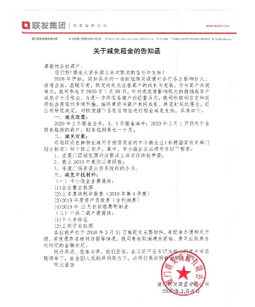 受此次疫情影響,各行各業都遭受到不小的沖擊,特別是中小微企業、個體經營者、商鋪門店,更面臨著營收下滑、租金費用等經營壓力。日前,廈門品牌國企廈門聯發商置有限公司積極履行社會責任,發布了一則減免租金的公告,為園區商企客戶減免3個月的租金,助力中小微企業渡過難關。