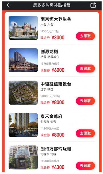 在購房補貼專欄,不乏熱門品質盤源,受到消費者熱捧,也因此收到全國各地置業者的好評。如南京的恒大養生谷,地鐵口精裝洋房,總價80萬起,只需5000元即可訂房,目前房多多有專屬5套特惠房,最高立省40萬元;以及龍湖時代上城項目,僅需1000元即可認購房源,享受一口價買房105萬起。此外,平臺給出3000元購房補貼,該項目已吸引2000人領券關注。