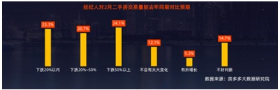報(bào)告顯示,超六成經(jīng)紀(jì)人認(rèn)為疫情將在5月之前結(jié)束,經(jīng)紀(jì)人普遍對(duì)2月業(yè)績(jī)預(yù)期悲觀,,其中24.1% 的經(jīng)紀(jì)人預(yù)計(jì)今年2月所在區(qū)域的二手房交易量同比下跌將超過(guò)50%。46.6%的管理者有信心將損失控制在30%以內(nèi)。