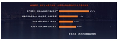 與此同時(shí),37.6%的經(jīng)紀(jì)人感受到疫情期間客戶對(duì)圖片、視頻與VR在線看房的需求明顯增加。23.5%的經(jīng)紀(jì)人在疫情期間開(kāi)始嘗試通過(guò)短視頻與微信賣房,17.5%的經(jīng)紀(jì)人明顯感覺(jué)與客戶在朋友圈中的互動(dòng)增多,私域流量對(duì)獲客的幫助有所提升。