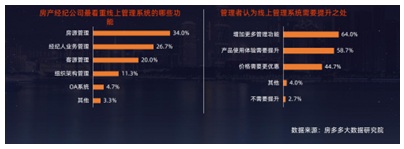 另一方面,多數(shù)企業(yè)在當(dāng)前環(huán)境被倒逼轉(zhuǎn)型、升級(jí),近七成管理者已使用線上管理系統(tǒng)。調(diào)查數(shù)據(jù)顯示,34.0%的管理者對(duì)房源管理功能最為看重,其次是經(jīng)紀(jì)人業(yè)務(wù)管理。64.0%的管理者認(rèn)為線上管理系統(tǒng)需要增加更多管理功能。