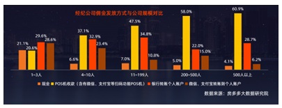 過(guò)去一年規(guī)模越大的經(jīng)紀(jì)公司以及2019年業(yè)務(wù)發(fā)生調(diào)整的經(jīng)紀(jì)公司,多采用POS機(jī)和銀行轉(zhuǎn)賬的方式收傭、收款。未來(lái),資金管理將越來(lái)越規(guī)范化,面向多門店、多類型、多渠道、多業(yè)務(wù),通過(guò)房產(chǎn)SaaS系統(tǒng)達(dá)到資金管理的線上收款、賬單歸集、賬務(wù)管理。