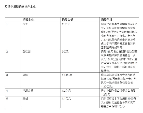 疫情中捐贈的房地產企業前五圖片來源:胡潤研究院
